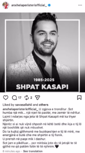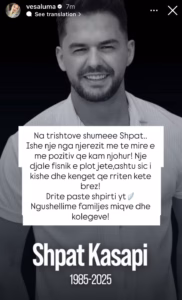 Lajmi për ndarjen nga jeta të këngëtarit Shpat Kasapi ka sjellë reagime të shumta nga artistë, kolegë dhe emra të njohur të jetës publike.
