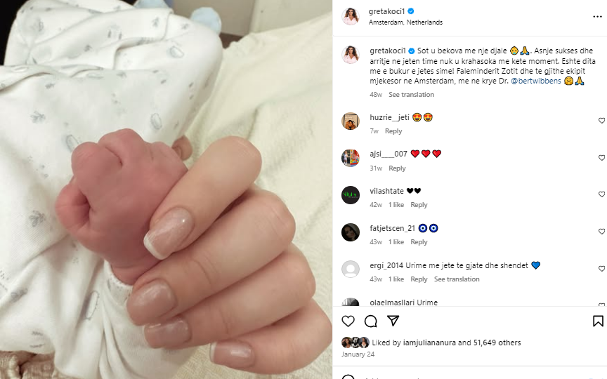 Muaji Janar, ishte një nga muajt më emocionues për Greta Kocin. Ajo solli në jetë djalin e saj të parë. Sot e kësaj dite Greta nuk e ndau me ndjekësit e saj emrin e të birit.
