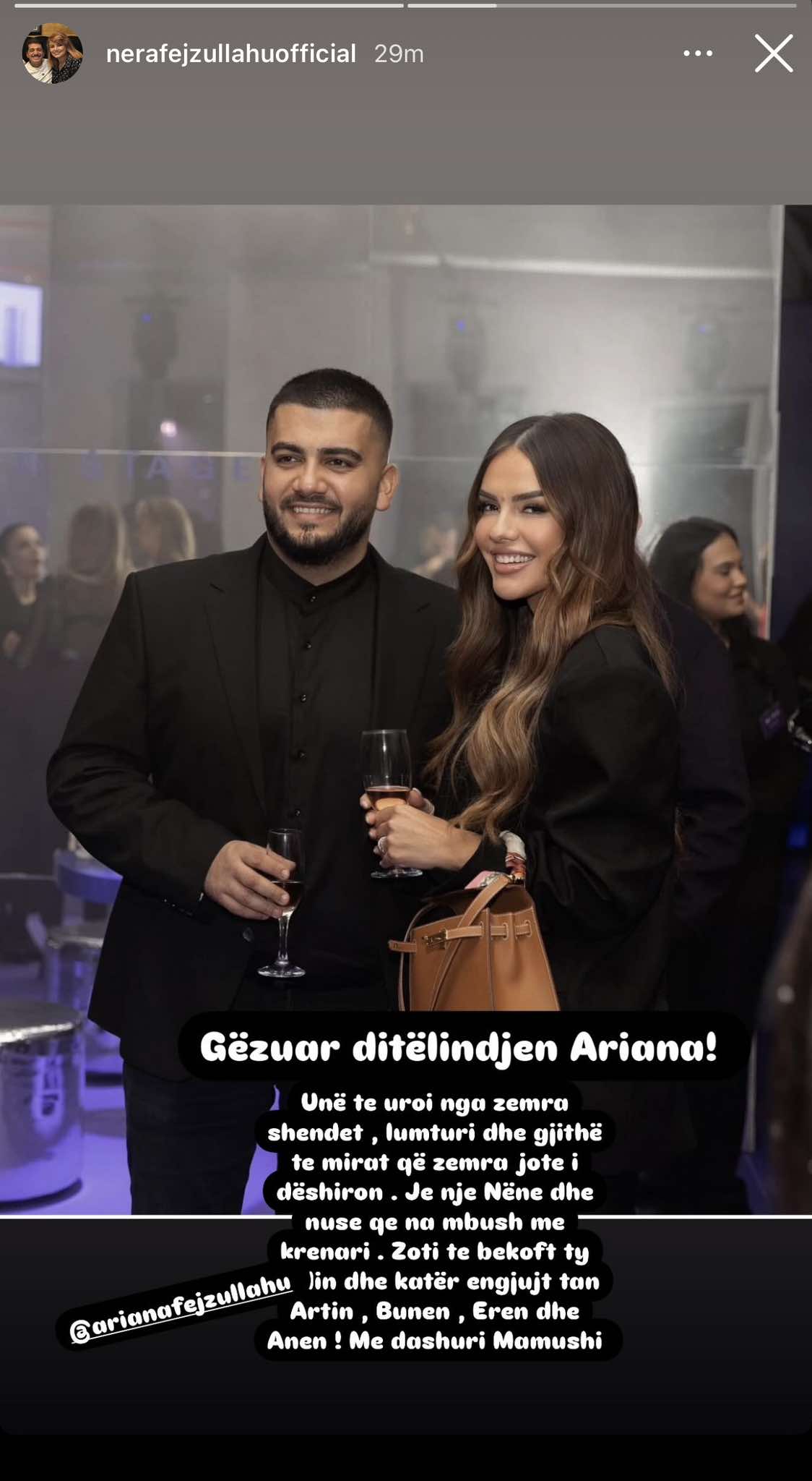 Me fjalë zemre dhe dashurie, Nera ka ndarë një urim të ndjerë për Arianën, duke treguar edhe një herë lidhjen e ngushtë që kanë mes vete, shkruan “Kosovarja”.