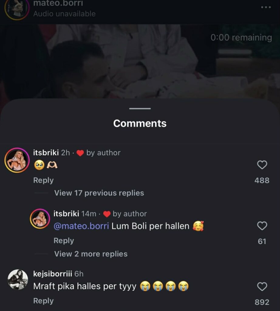 Në vend të përplasjeve, situata duket se ka afruar familjet. Profili zyrtar i Mateos publikoi një postim dedikuar “Bolit”, ndërsa reagimi i parë erdhi pikërisht nga familja e Brikenës, që menaxhon Instagramin e saj.