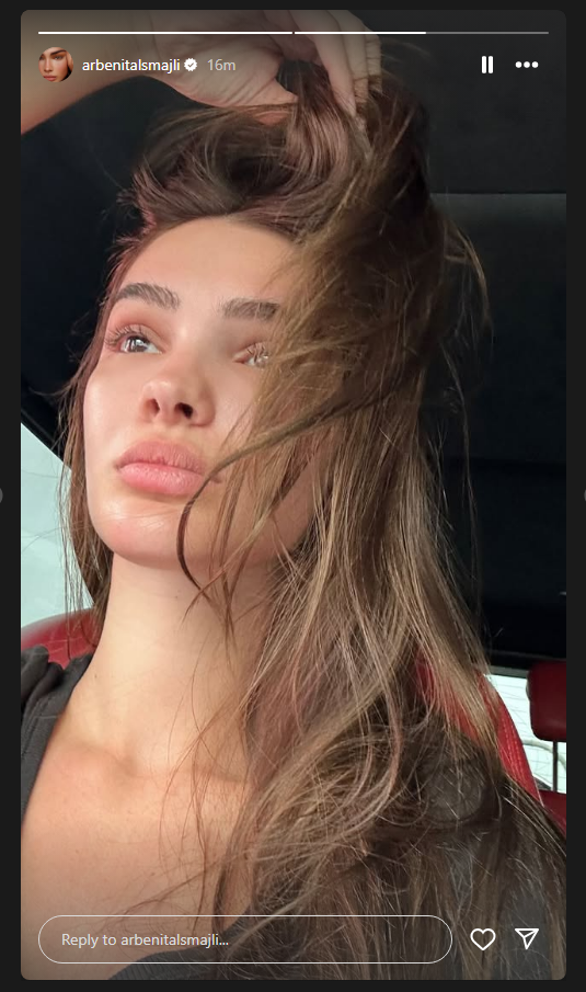 Pas këtij lajmi, Arbenita është shfaqur e mërzitur. Në Instastory ka publikuar një selfie ku shihet në mendime.