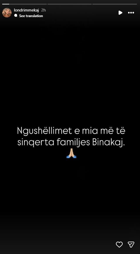 “Ngushëllime e mia më të sinqerta familjes Binakaj”, ka shkruar Londrimi në Instagram.