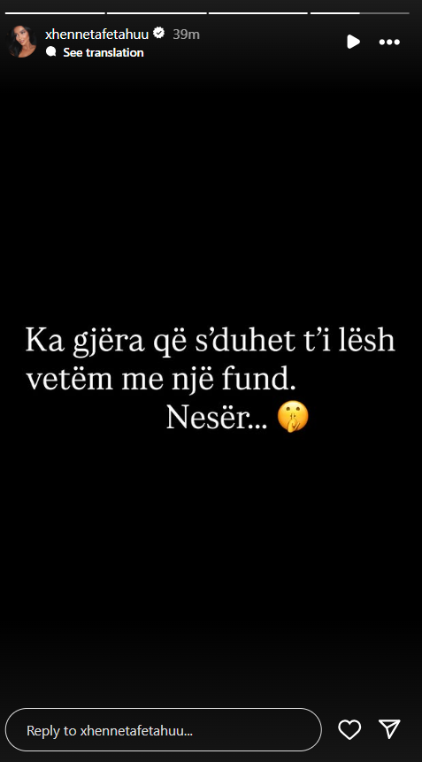 ”Ka gjëra që s’duhet t’i lësh vetëm me një fund. Nesër…”, ka shkruar ajo në rrjetet sociale duke lënë enigmë se për çfarë bëhet fjalë.