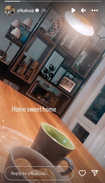 Ajo ka ndarë një foto ku shihet në shtëpinë e saj, teksa ka shkruara “e ëmbla shtëpi” e në tryezën e saj shihet një çaj me disa biskota, shkruan “Kosovarja”.