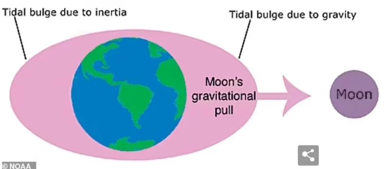 Ndërsa Toka rrotullohet, graviteti i hënës që rrotullohet rreth planetit tërheq oqeanet për të krijuar baticat e larta dhe të ulëta.